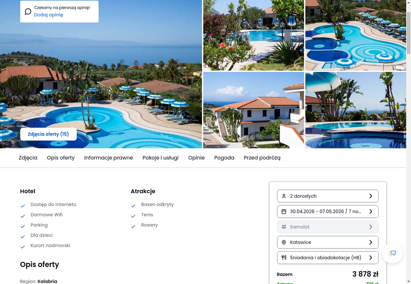 Aktualizacja: Majówka w malowniczej włoskiej Kalabrii: 3* hotel z wyżywieniem za 1909 zł