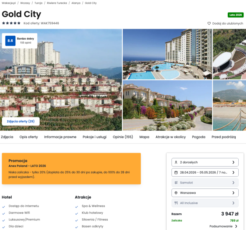 To dobra propozycja dla osób szukających komfortu i kompleksowej oferty w rozsądnej cenie. Spa, różnorodne baseny oraz bliskość plaży podnoszą wygodę pobytu, a widoki dodają mu uroku.