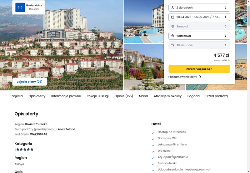 Alanya, Riwiera Turecka, Katowice, Poznań, Rzeszów, Warszawa, Wrocław