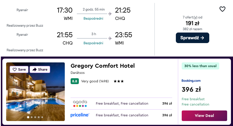 Loty z Warszawy (Modlin) do Chanii kuszą szczególnie, gdy cena biletów spada poniżej 200 zł. Bezpośrednie połączenie trwa nieco poniżej trzech godzin, więc szybko i bez przesiadek lądujesz na wyspie, gotowy na plażę i zwiedzanie od pierwszych chwil.Wiosną na Krecie robi się ciepło, a słońce świeci coraz mocniej. To dobry czas na plażowanie, spacery po wybrzeżu i aktywny wypoczynek na świeżym powietrzu.