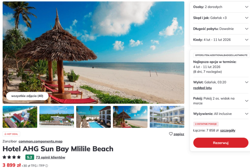 Wylot z Gdańska na Zanzibar przebiega w wygodnych warunkach, a po przylocie kierujesz się prosto do czterogwiazdkowego AHG Sun Bay Mlilile Beach. To propozycja w formule all inclusive, idealna dla osób szukających egzotycznego wypoczynku w tropikalnych klimatach.