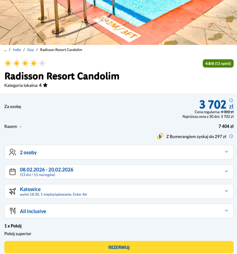 Biorąc pod uwagę standard hotelu i otoczenie Goa, to oferta warta uwagi. Sprawdzi się, jeśli chcesz połączyć poznawanie Indii z wygodnym wypoczynkiem.
