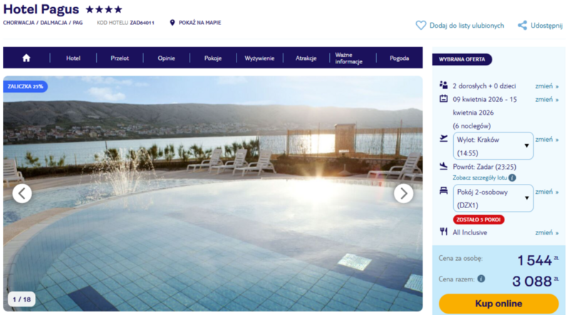 Wyloty z Krakowa, Gdańska, Poznania i Wrocławia do hotelu Pagus w Dalmacji to dobry sposób na odpoczynek w nadmorskiej scenerii i zmianę otoczenia.