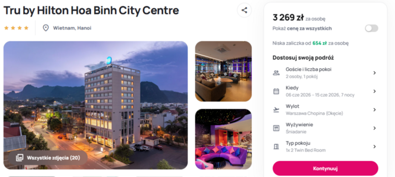 Wylot z Warszawy do Wietnamu z zakwaterowaniem w hotelu Tru by Hilton Hoa Binh City Centre.