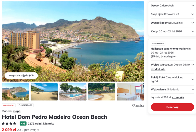 Wylot do Portugalii z Warszawy, a celem podróży jest czterogwiazdkowy Hotel Dom Pedro Madeira Ocean Beach.