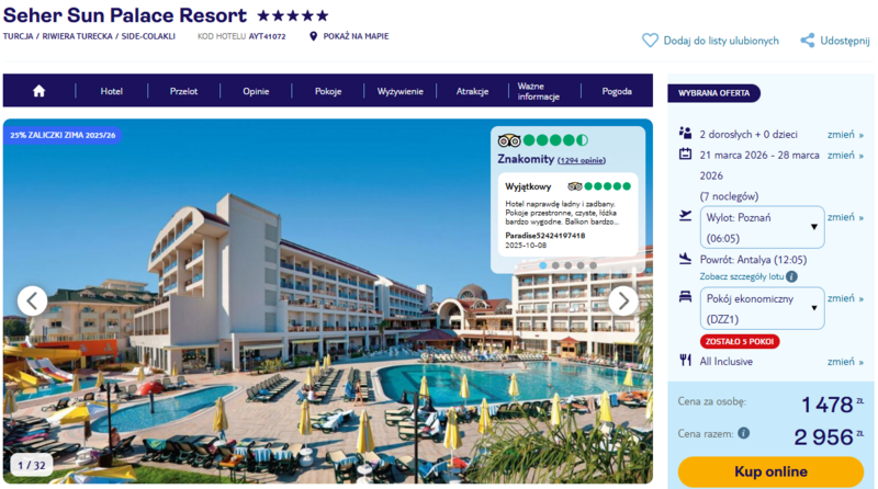 Wyloty z Poznania, Warszawy, Gdańska, Katowic i Wrocławia prowadzą na Riwierę Turecką, do Seher Sun Palace Resort – eleganckiego hotelu, który łączy relaks z aktywnym wypoczynkiem.