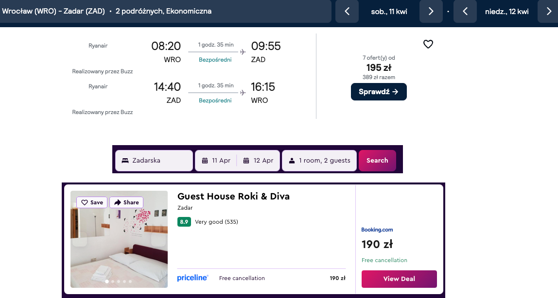 Bezpośrednie loty z Wrocławia do Zadaru to wygodny sposób, by szybko przenieść się nad Adriatyk. Podróż trwa około 1 godziny i 35 minut, więc niedługo po starcie jesteś na miejscu.