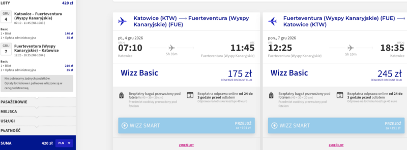 Z Katowic do Hiszpanii można znaleźć korzystne ceny, a lot bezpośredni na Wyspy Kanaryjskie dodatkowo ułatwia planowanie. Fuerteventura oferuje nie tylko plaże, ale też świetne warunki do surfingu, windsurfingu i nurkowania, więc coś dla siebie znajdą zarówno miłośnicy relaksu, jak i aktywnego wypoczynku.