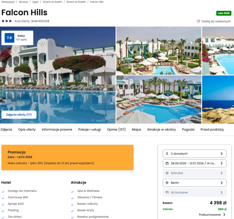 Wyloty z Berlina do Egiptu prowadzą do Sharm El Sheikh, gdzie czeka hotel Falcon Hills.