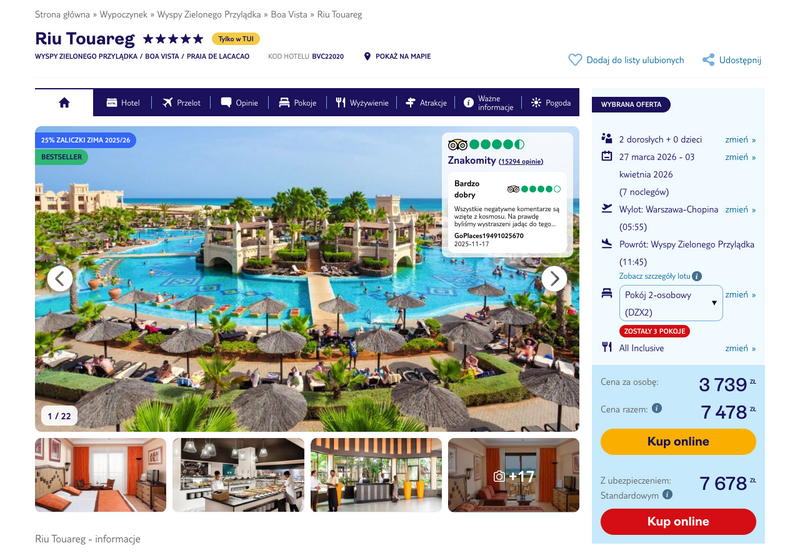 Aktualizacja: Wyspy Zielonego Przylądka: Luksusowy 5* Riu Touareg z all inclusive od 3629 zł