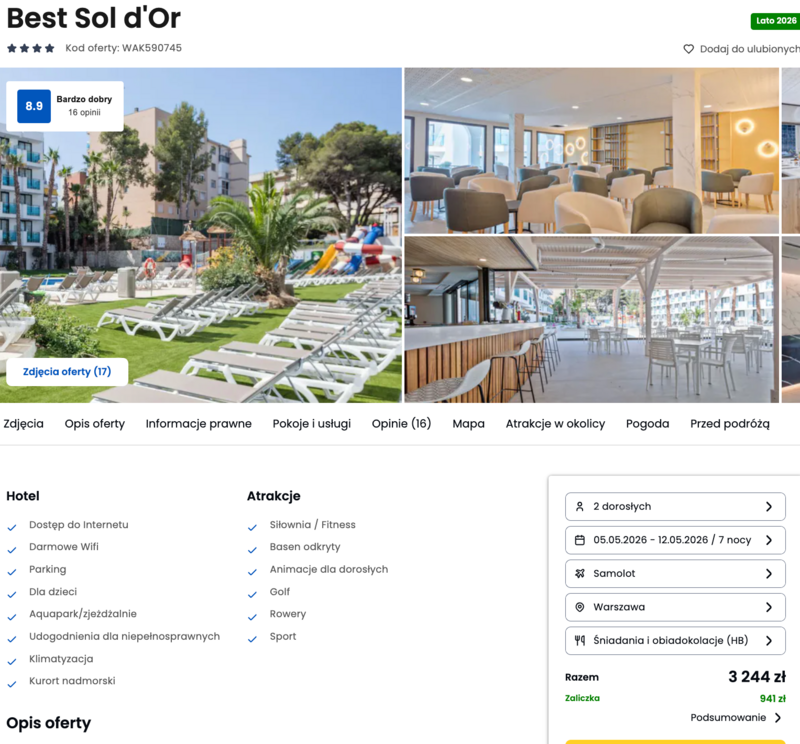 Jeśli zależy Ci na wygodnym hotelu w dobrej lokalizacji i z solidną obsługą, Best Sol d’Or to propozycja warta rozważenia na słoneczny urlop w Hiszpanii.