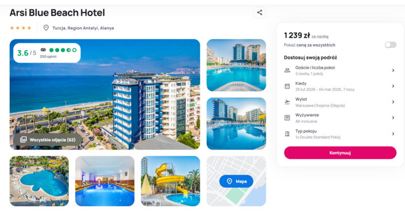 To propozycja warta rozważenia dla osób, które cenią wygodne zakwaterowanie, dobrą kuchnię i bliskość atrakcji. Połączenie standardu 4*, all inclusive i świetnej lokalizacji przekłada się na spokojny, bezproblemowy urlop w ładnym otoczeniu Turcji.