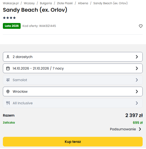 Marzysz o regenerującym wypoczynku nad brzegiem morza w rewelacyjnej cenie? Ta oferta to strzał w dziesiątkę dla każdego mieszkańca Dolnego Śląska i okolic. Dzięki bezpośredniemu połączeniu z lotniska we Wrocławiu, Twoja podróż w stronę słynnych Złotych Piasków upłynie szybko, komfortowo i bez zbędnych przesiadek.