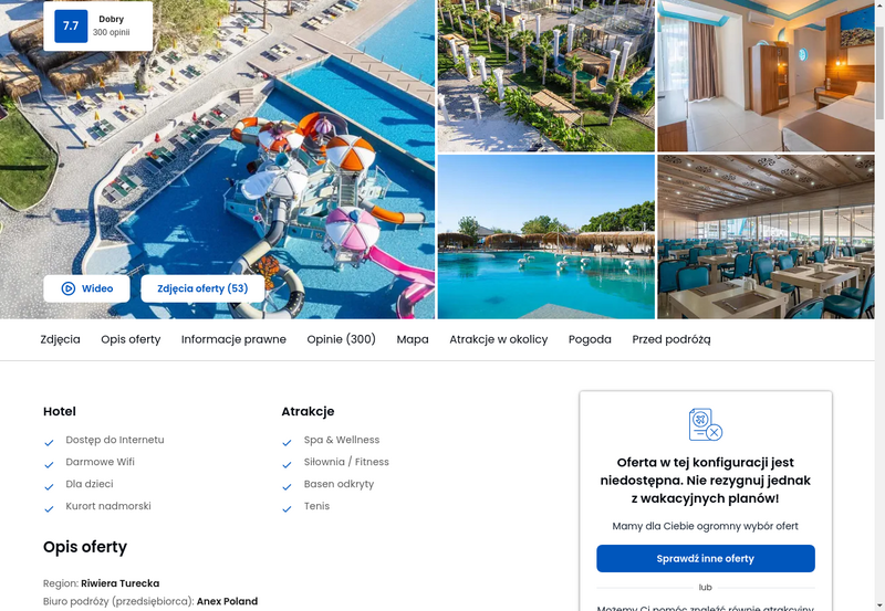 Niedostępność oferty została udokumentowana zrzutem ekranu.