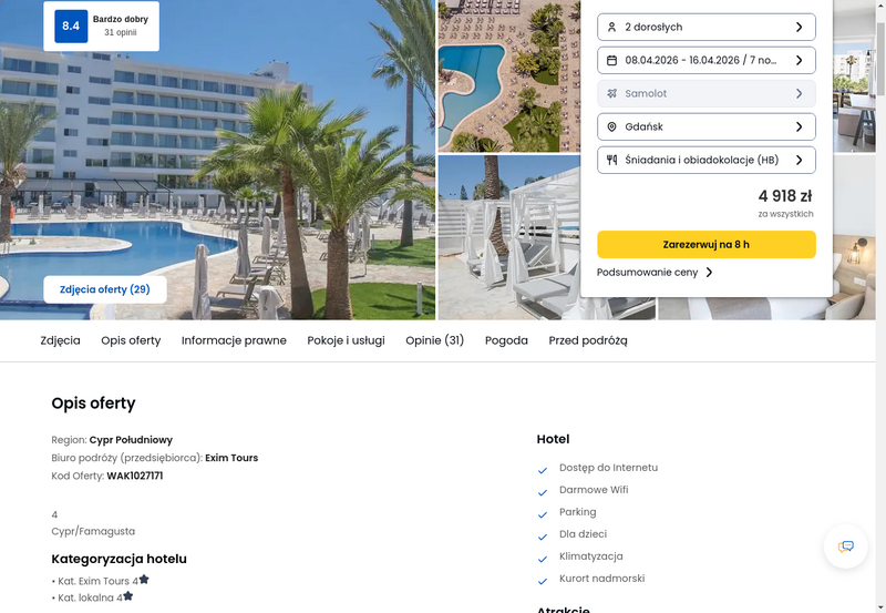 Aktualizacja: Relaks w śródziemnomorskim klimacie: Cypr, 4* hotel z wyżywieniem od 1789 zł