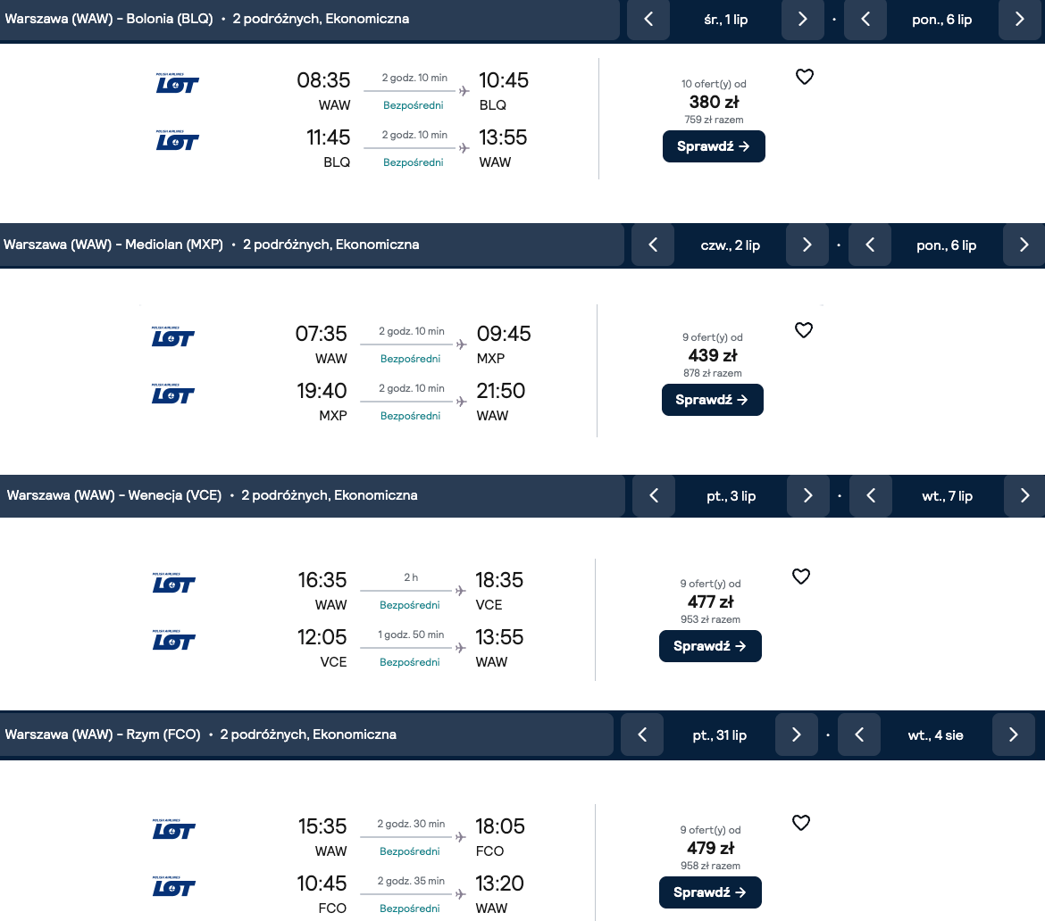PLL LOT: Tanie wakacyjne loty do Włoch (Bolonia, Mediolan, Wenecja i Rzym) od 380 zł