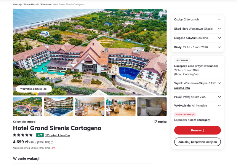 Aktualizacja: Zostaw zimę daleko za sobą: Kolumbia, 5* hotel z all inclusive za 4699 zł