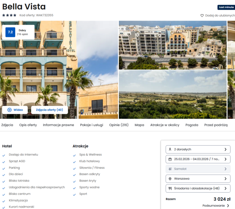 Wypoczynek zaplanowano w 4* hotelu Bella Vista w Zatoce Świętego Pawła, który goście chwalą za nienaganną czystość oraz wyjątkowo życzliwą obsługę. Użytkownicy w swoich opiniach często podkreślają, że przestronne pokoje oraz smaczne, różnorodne posiłki serwowane w restauracji głównej stanowią idealną bazę do regeneracji sił. Na terenie obiektu do dyspozycji pozostaje kryty basen, siłownia oraz klimatyczny bar z muzyką na żywo, co pozwala na pełen relaks po dniu spędzonym na odkrywaniu uroków wyspy.
