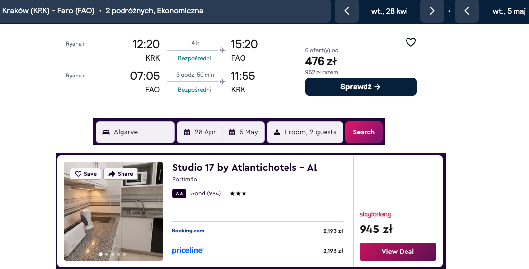Wykorzystując te przystępne cenowo bilety lotnicze, można zaplanować wymarzoną majówkę w regionie Algarve. Loty odbywają się na pokładzie samolotów linii Ryanair, a podróż bez przesiadek trwa około czterech godzin, co zapewnia wysoki komfort i oszczędność czasu. Jest to obecnie jedna z najatrakcyjniejszych propozycji podróży z małopolskiego lotniska.Wyjazd w tym okresie gwarantuje bardzo przyjemne warunki pogodowe, idealne zarówno do aktywnego zwiedzania, jak i wypoczynku nad Oceanem Atlantyckim. Portugalska wiosna charakteryzuje się dużą ilością słońca i temperaturami znacznie wyższymi niż w Polsce, co pozwala cieszyć się urokami lokalnych plaż oraz malowniczych klifów przed szczytem sezonu wakacyjnego. Wybór tej oferty przelotu to sprawdzony sposób na spędzenie wolnego czasu w jednym z najpiękniejszych zakątków Europy.