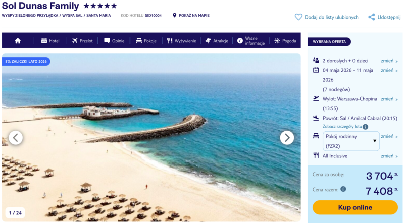 Wyspy Zielonego Przylądka w tym terminie oferują fantastyczną pogodę z temperaturami sięgającymi 25 stopni Celsjusza i mnóstwem słońca. Wolny czas można spędzić na piaszczystej plaży lub skorzystać z lokalnych atrakcji, takich jak rejsy katamaranem czy wycieczki samochodami z napędem na cztery koła do słonego jeziora w Pedra de Lume. Formuła all inclusive pozwala w pełni cieszyć się egzotycznym urlopem, zapewniając dostęp do różnorodnych przekąsek i orzeźwiających napojów przez cały dzień. To doskonały sposób na naładowanie baterii w otoczeniu błękitu Oceanu Atlantyckiego.