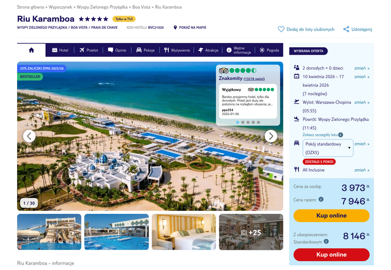 Aktualizacja: Boa Vista (Wyspy Zielonego Przylądka): znakomity 5* hotel z all inclusive za 3966 zł