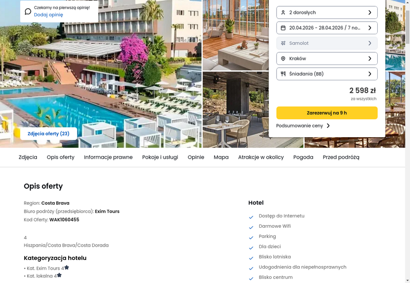Aktualizacja: Wypoczynek w Hiszpanii (Costa Brava): 4* hotel ze śniadaniami od 1269 zł