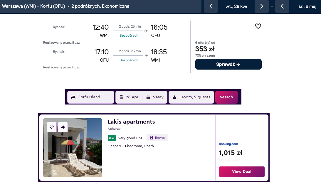 Marzysz o idealnej majówce, która nie nadwyręży Twojego portfela? Teraz to możliwe dzięki bezpośrednim lotom z warszawskiego Modlina prosto na słoneczną wyspę Korfu. Zapomnij o uciążliwych przesiadkach i wielogodzinnych podróżach. Na pokładzie samolotu linii Ryanair dotrzesz do tego greckiego raju w zaledwie dwie i pół godziny, co czyni tę ofertę bezkonkurencyjną pod względem wygody i ceny.Maj to absolutnie magiczny czas na odwiedzenie Korfu. Wyspa tonie wówczas w świeżej zieleni i kolorowych kwiatach, a temperatury oscylujące wokół dwudziestu stopni Celsjusza sprzyjają zarówno aktywnemu zwiedzaniu, jak i błogiemu relaksowi nad brzegiem Morza Jońskiego. Możesz cieszyć się słońcem i urokami greckich miasteczek bez tłumów charakterystycznych dla wysokiego sezonu. To idealna okazja, aby naładować baterie i poczuć prawdziwie śródziemnomorski klimat jeszcze przed wakacjami. Nie zwlekaj z rezerwacją, bo takie budżetowe połączenia w terminie majówkowym znikają błyskawicznie. Podaruj sobie wiosenne wytchnienie, na które zasługujesz, i zaplanuj swoją grecką przygodę już teraz.