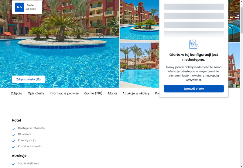 Niedostępność oferty została udokumentowana zrzutem ekranu.