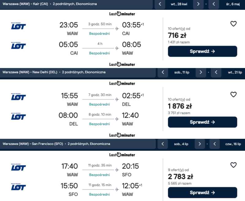PLL LOT: Tanie loty na majówkę do Kairu za 716 zł. Loty na wakacje do Delhi za 1876 zł, do San Francisco za 2783 zł