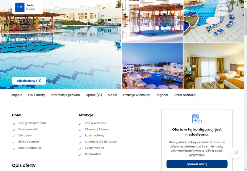 Niedostępność oferty została udokumentowana zrzutem ekranu.