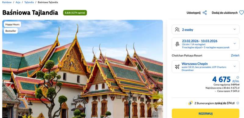 2-tygodniowa podróż do Tajlandii za 4675 zł (wycieczka objazdowa + wypoczynek)