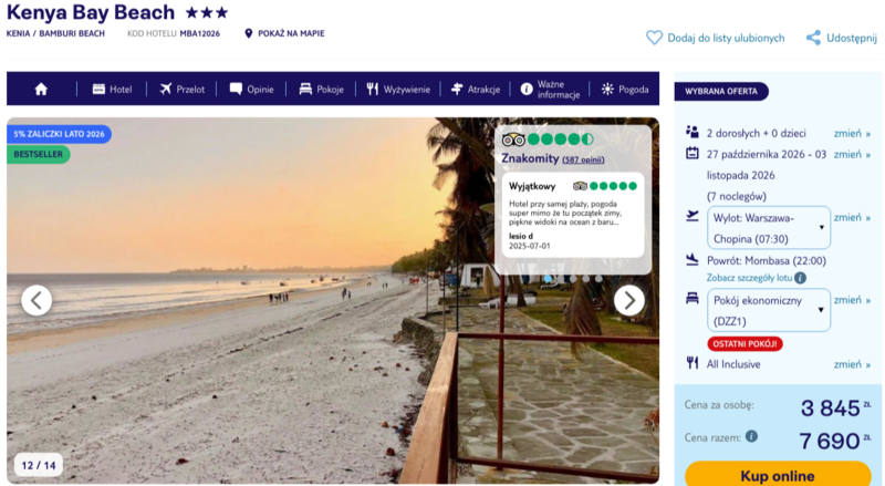 Rezerwuj z wyprzedzeniem: Kenia, 3* hotel z all inclusive przy plaży za 3845 zł