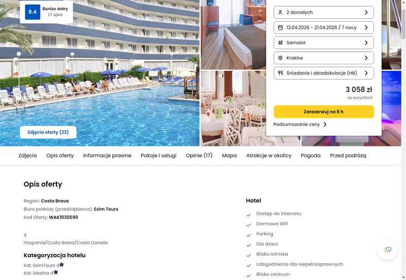 Aktualizacja: Hiszpania (Costa Brava): 4* hotel z wyżywieniem od 1439 zł