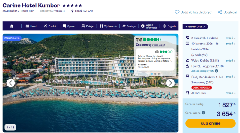 Komfortowy wypoczynek w eleganckim standardzie 5* czeka na wszystkich chętnych, którzy zdecydują się na bezpośredni wylot z Krakowa do malowniczej Czarnogóry.