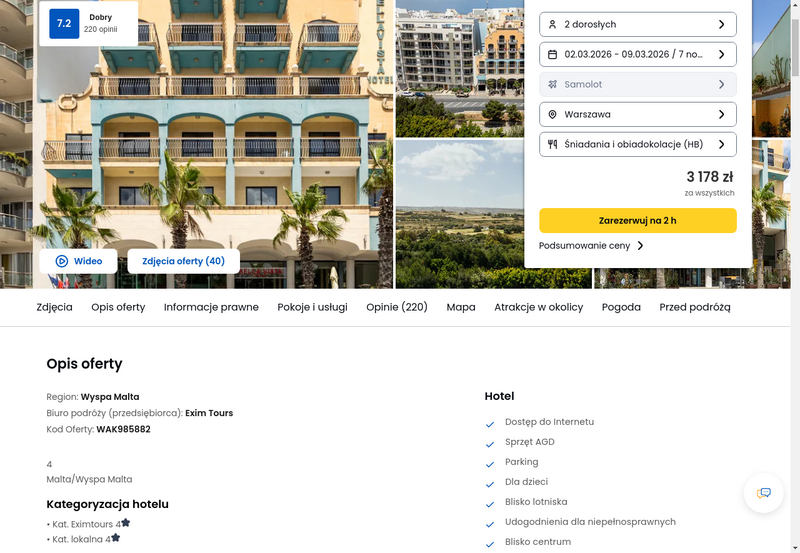 Aktualizacja: Słoneczna Malta: tydzień w 4* hotelu z wyżywieniem od 1499 zł