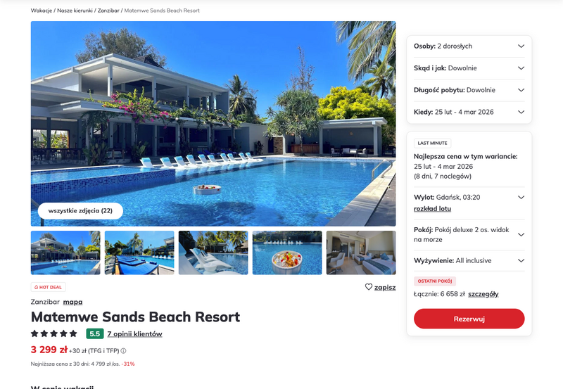 Misją Lastminuter.pl jest przedstawienie Ci najlepszych zdaniem naszej redakcji okazji na podróże. Opisujemy oferty znalezione przez nas w internecie i wskazujemy adresy internetowe, pod którymi samodzielnie możesz wykupić podróż lub elementy podróży. Ceny w artykułach są aktualne w chwili publikacji. Możemy otrzymywać wynagrodzenie od partnerów handlowych, do których Cię przekierowujemy. Nie ma to wpływu na cenę Twojej wycieczki. Powielanie publikacji zabronione.