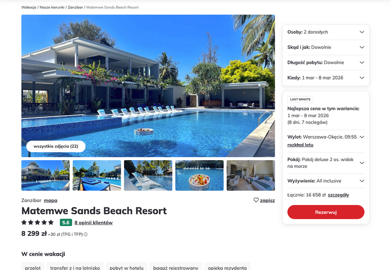 Aktualizacja: Rajskie plaże i turkusowy ocean: Zanzibar, 5* hotel z all inclusive od 3299 zł