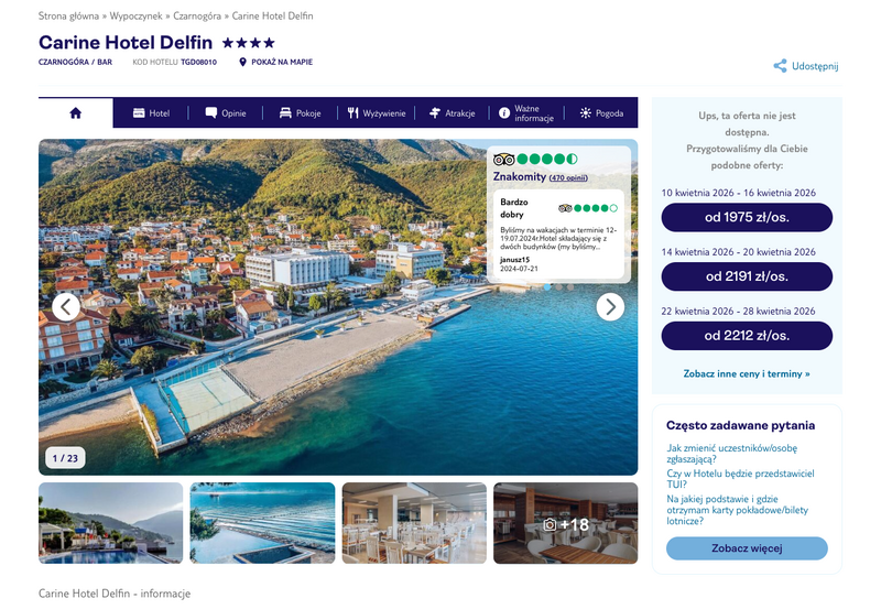 Niedostępność oferty została udokumentowana zrzutem ekranu.