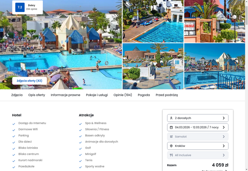 Oferty wycieczek dostarczone przez naszych partnerów nie są aktualizowane w czasie rzeczywistym, w związku z czym ceny i dostępność ofert mogą się nieznacznie różnić od aktualnych. Dokładamy wszelkich starań aby rozbieżności były jak najmniejsze.