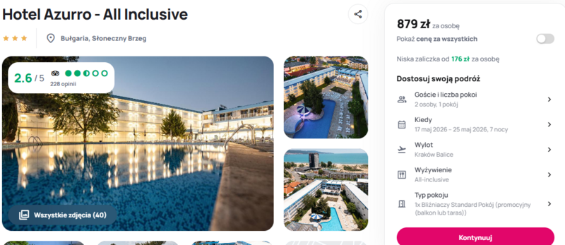 Planując pobyt w tym terminie, można spodziewać się bardzo przyjemnej, wiosennej aury. Bułgaria w tym czasie wita przyjezdnych temperaturami idealnymi do spacerowania i zwiedzania okolicznych atrakcji, takich jak pobliska miejscowość Nesebyr. Choć opinie użytkowników bywają zróżnicowane i wskazują na prosty, ekonomiczny standard obiektu, bliskość centrum i wygodna formuła wyżywienia czynią ten wyjazd atrakcyjnym wyborem dla osób nastawionych na aktywne spędzanie czasu nad Morzem Czarnym. Kolejne dni upłyną tu pod znakiem relaksu przy basenie lub korzystania z licznych punktów handlowych w okolicy.