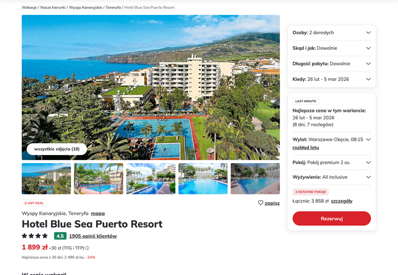 Aktualizacja: Teneryfa last minute: 4* hotel z all inclusive od 1899 zł