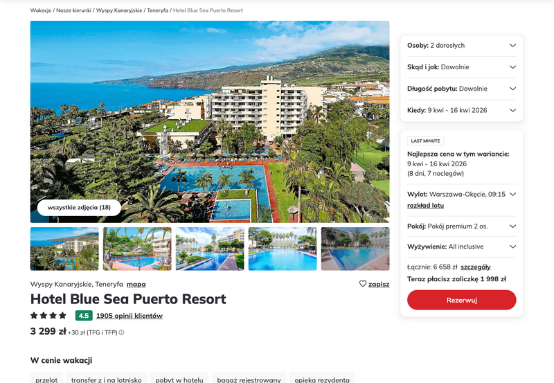 Aktualizacja: Teneryfa last minute: 4* hotel z all inclusive od 1899 zł