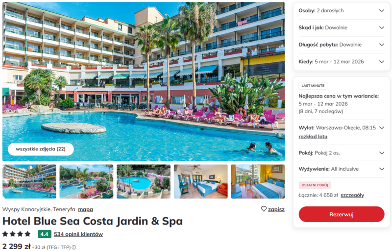 Wyspy Kanaryjskie o tej porze roku oferują idealne warunki do regeneracji sił, kusząc przyjemną temperaturą oscylującą wokół 25 stopni Celsjusza. Podczas pobytu warto odwiedzić pobliski ogród botaniczny lub skorzystać z bezpłatnego busa do centrum portowego miasta Puerto de la Cruz. Na miłośników aktywnego wypoczynku czekają animacje, minigolf oraz wieczory tematyczne. To doskonała okazja, by poczuć kanaryjską fiesztę, spróbować słynnych ziemniaczków z sosami mojo i cieszyć się słońcem, gdy w Polsce wciąż panuje przedwiośnie.