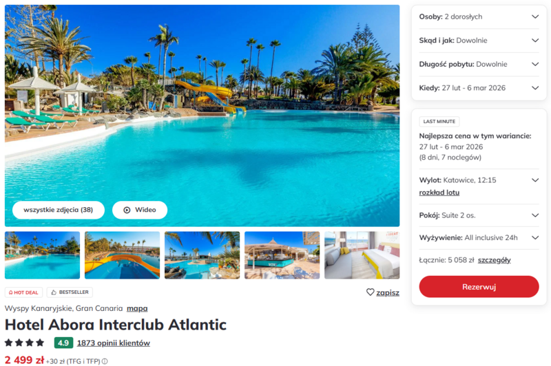 Gran Canaria last minute: 4* hotel z all inclusive 24h za 2499 zł