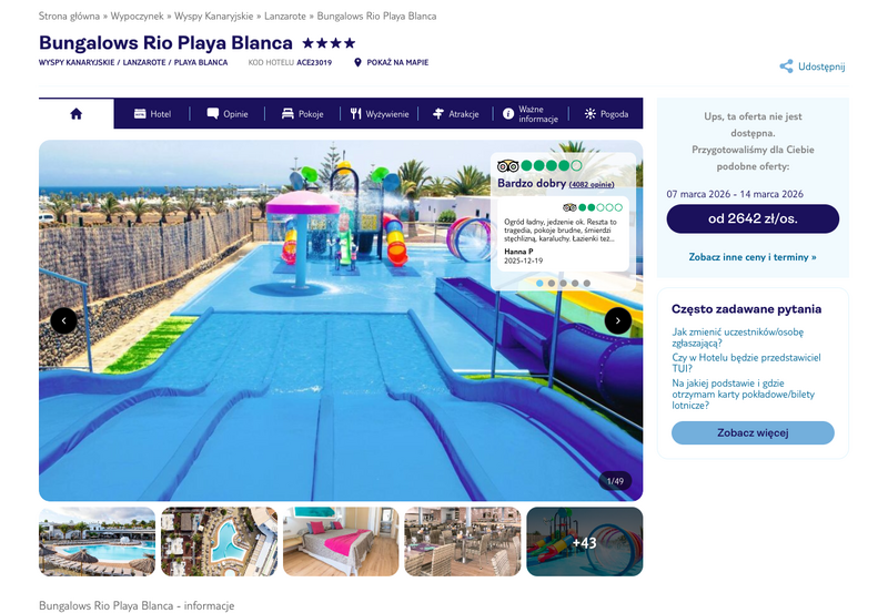 Niedostępność oferty została udokumentowana zrzutem ekranu.