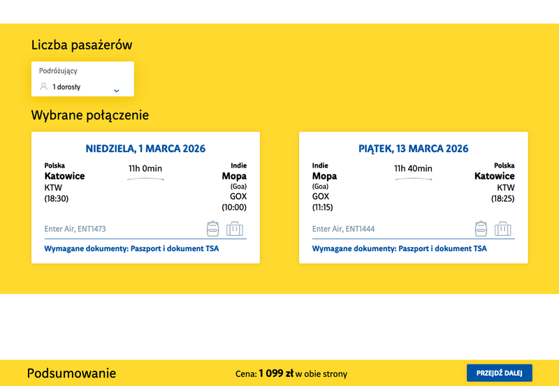 Aktualizacja: Loty w okazyjnej cenie: Indie z 2 polskich miast za 999 zł