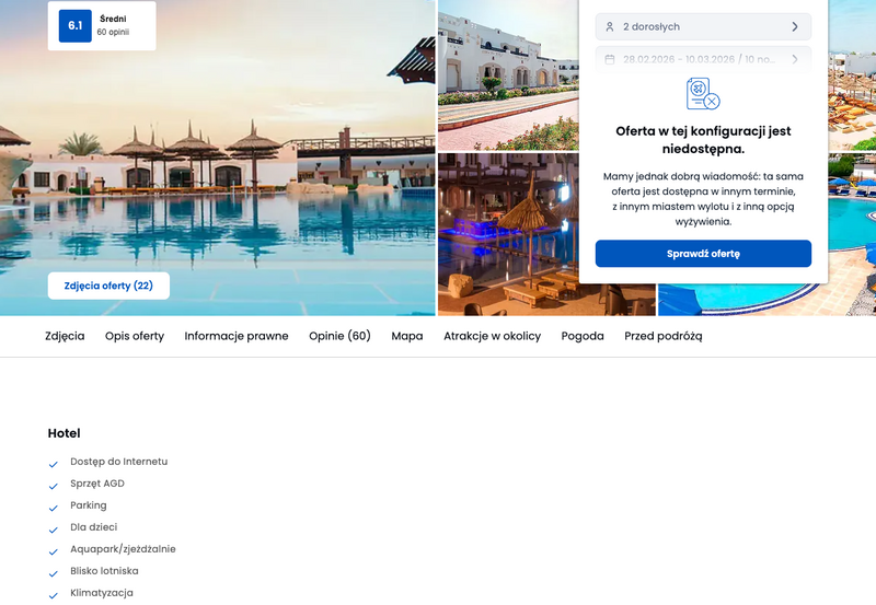 Niedostępność oferty została udokumentowana zrzutem ekranu.