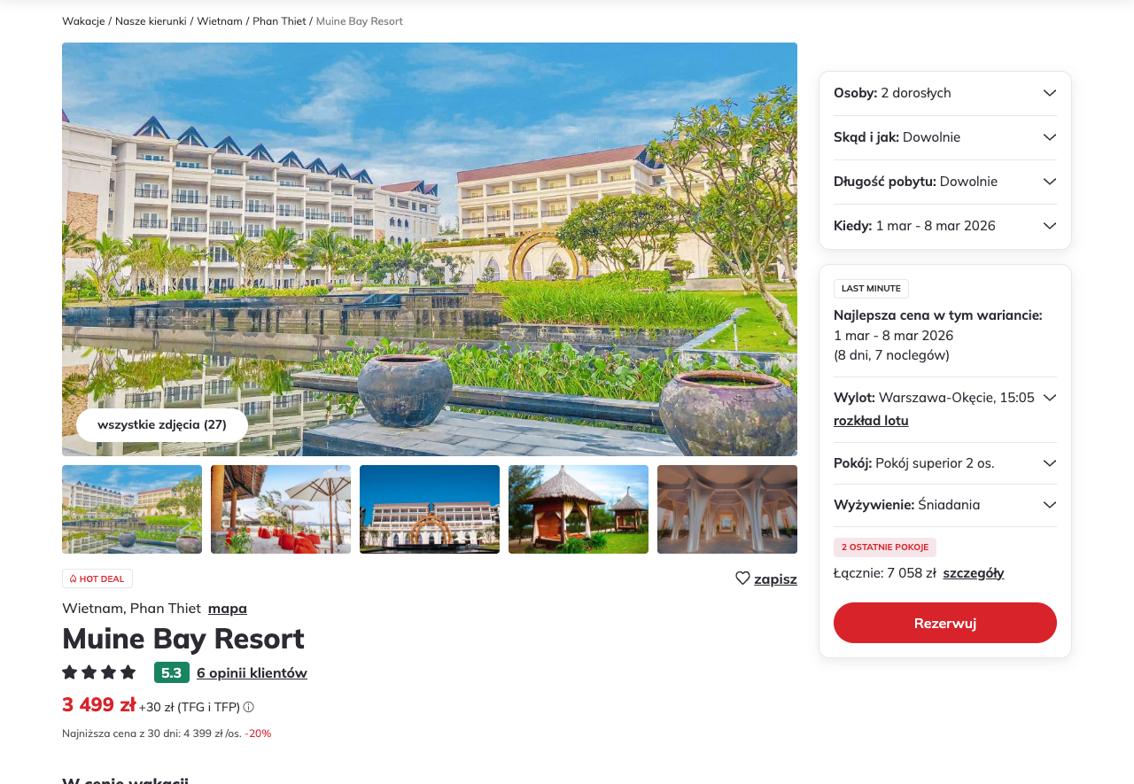 Misją Lastminuter.pl jest przedstawienie Ci najlepszych zdaniem naszej redakcji okazji na podróże. Opisujemy oferty znalezione przez nas w internecie i wskazujemy adresy internetowe, pod którymi samodzielnie możesz wykupić podróż lub elementy podróży. Ceny w artykułach są aktualne w chwili publikacji. Możemy otrzymywać wynagrodzenie od partnerów handlowych, do których Cię przekierowujemy. Nie ma to wpływu na cenę Twojej wycieczki. Powielanie publikacji zabronione.