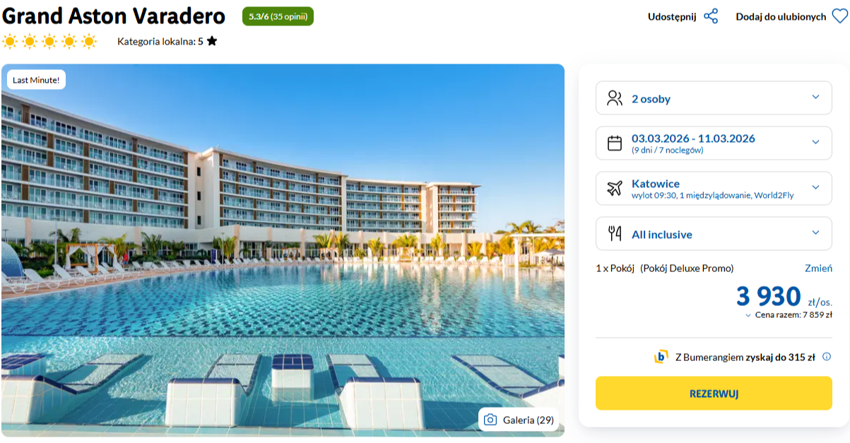 Pogoda na Kubie w tym okresie jest po prostu idealna. Można liczyć na pełne słońce, przyjemne temperatury sięgające 26 stopni Celsjusza oraz ciepłą, turkusową wodę. Miłośnicy aktywnego spędzania czasu chętnie odwiedzają okoliczne kluby salsy lub bar The Beatles, a wieczory umila muzyka na żywo. Program animacyjny obejmuje zarówno zajęcia sportowe, jak i lekcje języka hiszpańskiego, dzięki czemu każdy odnajdzie swój rytm w tym wyspiarskim raju. Całości dopełnia bogata opcja all inclusive, obejmująca kolorowe napoje i przekąski dostępne przez cały dzień.