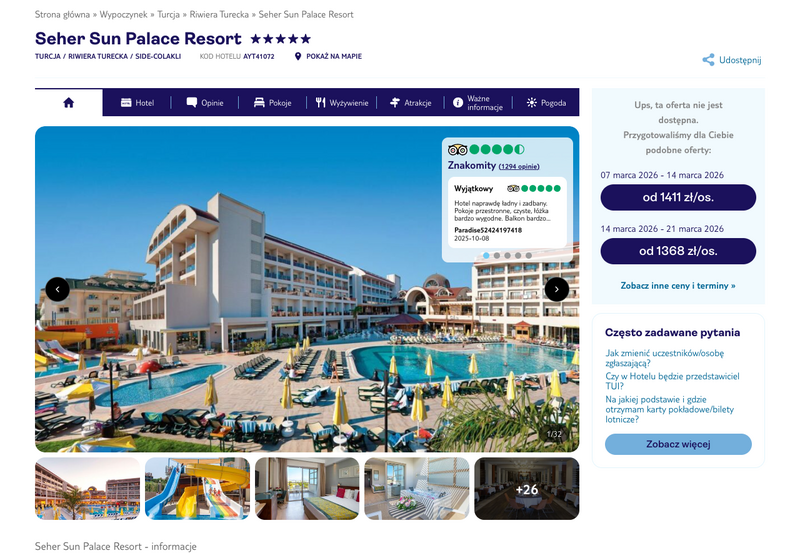 Oferty wycieczek dostarczone przez naszych partnerów nie są aktualizowane w czasie rzeczywistym, w związku z czym ceny i dostępność ofert mogą się nieznacznie różnić od aktualnych. Dokładamy wszelkich starań aby rozbieżności były jak najmniejsze.